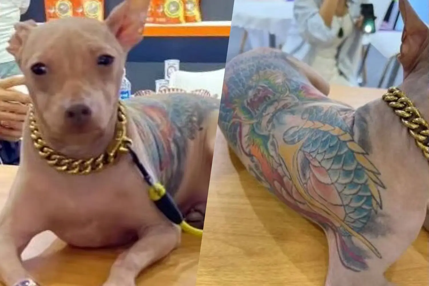На международной выставке Pet Fair Asia, прошедшей в Шанхае, разгорелся скандал после появления собаки, покрытой яркими татуировками.